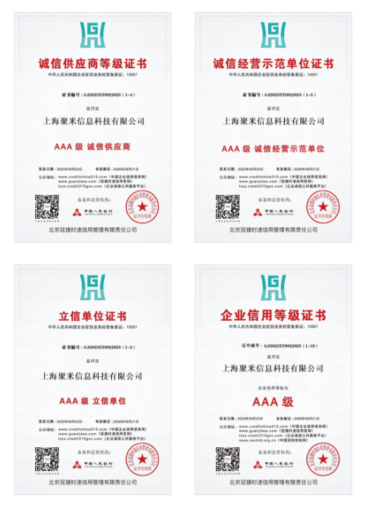 這代表了企業(yè)信用評價(jià)的最高級別,未來聚米將始終堅(jiān)持,誠信立企,守信經(jīng)營。